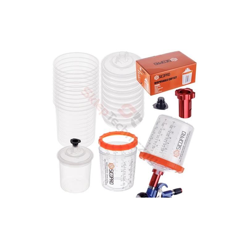 Les gobelets jetables sont conçus pour fonctionner avec des pistolets de pulvérisation à gravité.